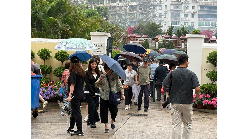 【本報訊】受一道低壓槽持續影響華南沿岸,本澳昨日不時有大驟雨,天氣不穩但無礙清明掃墓人潮,本澳多個墓園一早便有居民前往掃墓祭祖。不過,有不少市民趁假期外遊,而將掃墓儀式提前或延後,人流錯峰之下,昨日掃墓人潮未算十分擠擁。
