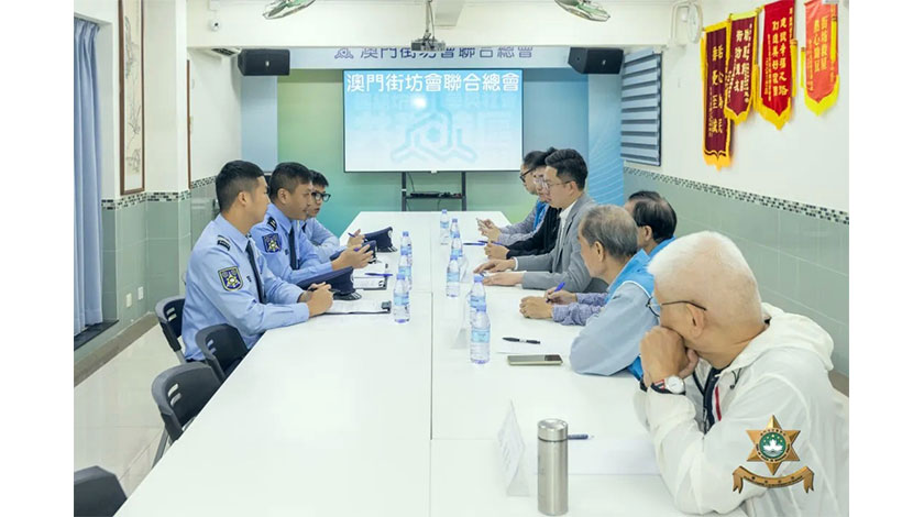 治安警察局於3月30日至4月2日期間,先後走訪澳門物業管理業商會及澳門不動產管理專業技術人員協會、澳門街坊會聯合總會轄下的青洲坊眾互助會、大廈工作委員會和氹仔坊眾聯誼會,與各社團代表舉行民防工作會議。會上,該局除就本年度民防演習流程進行講解外,亦詳細講解颱風應對、避險疏散等實用資訊,並實地了解社區民防設備的維護狀況,聽取社團代表對民防設備實際操作的回饋,進一步強化該局與民間力量的協同防範能力。