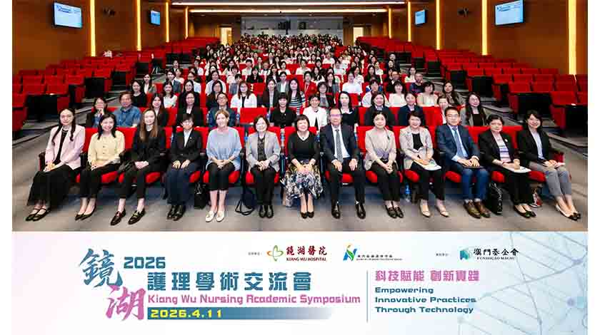 【特訊】由澳門鏡湖護理學院和鏡湖醫院護理部合辦的「2026鏡湖護理學術交流會」,於4月11日假澳門鏡湖護理學院離島醫療綜合體校址會議中心圓滿舉行。本屆為該系列活動第十三屆,以「科技賦能,創新實踐」為主題,聚焦健康科技如何提升病人照護成果,探討護理領域的前沿創新與臨床應用,吸引兩院護士及護理師生逾三百人現場參加。活動同時設有線上直播,讓更多護理同業及師生得以即時參與交流。