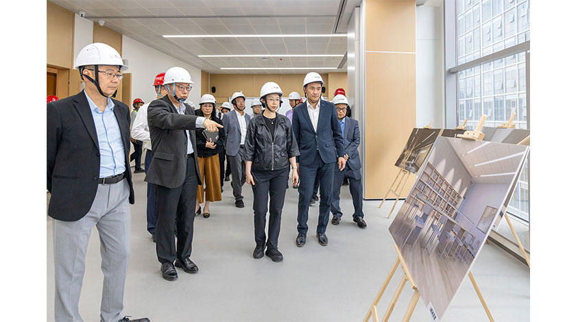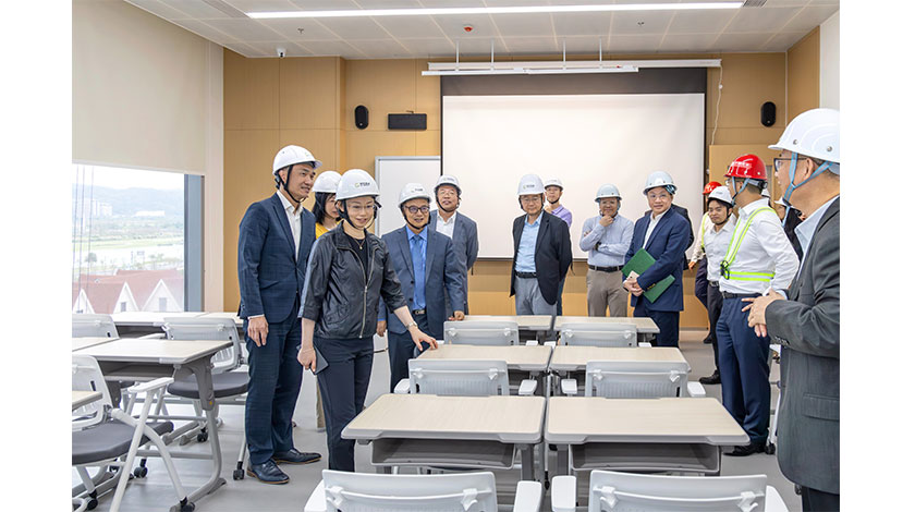 柯嵐司長一行先抵達位於合作區的大學城第一期項目設施進行考察。有關項目建築面積約6萬5千平方米,改造裝修工程現正進行,澳門大學、澳門理工大學、澳門旅遊大學預計於2026年8至9月期間入駐,開展研究生教學活動。