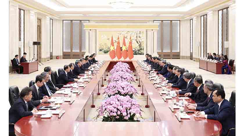 這是蘇林當選越南國家主席後首次出訪。會談中,習近平再次祝賀蘇林當選越南國家主席,並強調無論國際形勢如何變化,中方始終將越南作為周邊外交優先方向,願同越方秉持初心、賡續友誼,團結協作、相互支持,繼續按照“六個更”總體目標,高質量推進全面戰略合作,加快構建更高水平具有戰略意義的中越命運共同體,為推動構建人類命運共同體作出更大貢獻。