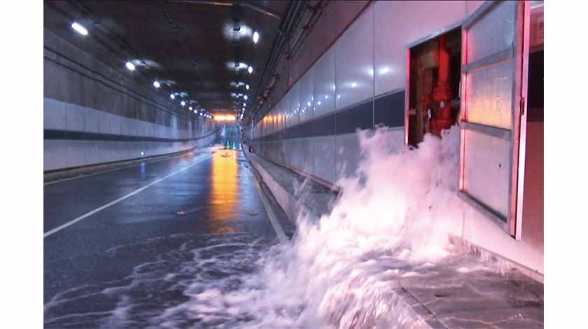 【本報訊】澳門大學河底隧道昨晚有消防水管爆裂,大量的水湧出,淹浸隧道內最低一段車道,水深約有四十厘米,駛至的車輛未敢通過。消防員和交通警員接報到場處理,實施臨時交通封閉,並指揮堵在隧道內的多輛車調頭駛離,事件中無人被困。