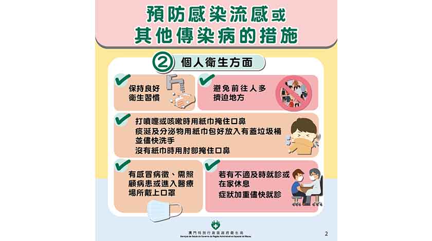 為減少感染流感及其他傳染病的風險,衛生局呼籲居民參考以下圖文包,加強個人防護措施。