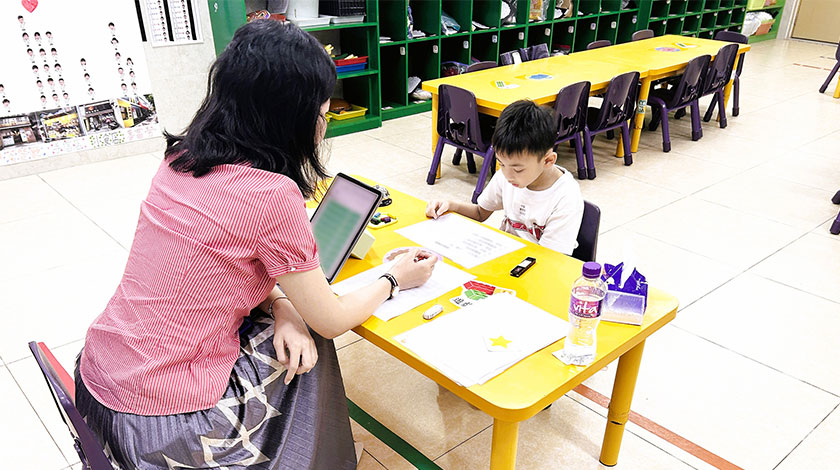 考試在校園內進行,幼兒在熟悉環境中應考,配合遊戲化評核,表現更從容自然。作為 GAPSK 與聖若瑟教區中學第五校共建「普通話中華文化推廣基地」的合作成果之一,本次幼稚園駐校考試順利落地該校,進一步落實基地在語文教育與文化推廣的價值。