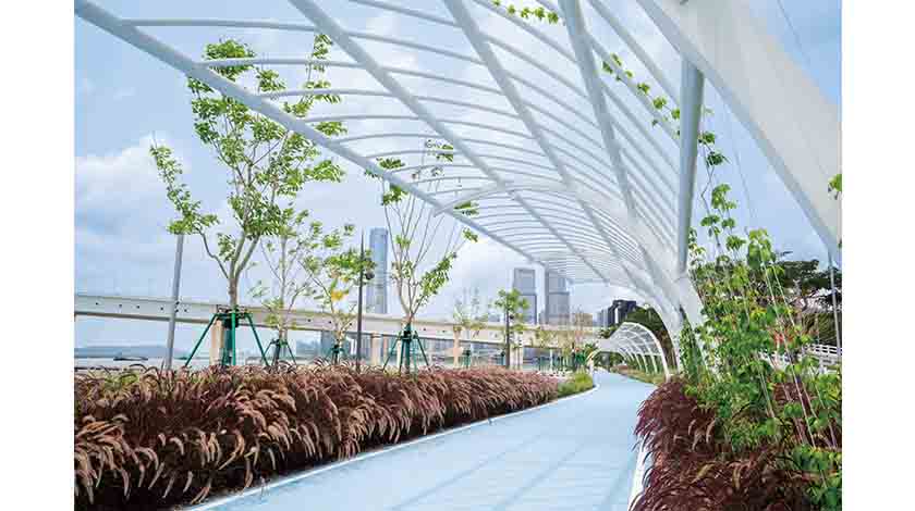 南岸海濱綠廊二期工程分三區,範圍由嘉樂庇總督大橋至融和門之間,建造總面積約六萬平方米。一區及二區已按計劃開放,三區亦已於去年年底開展工程,南岸海濱綠廊二期休憩區的全部工程預計於 2027 年上半年完成。整個項目設計以親子遊樂、休閒康體、親水景觀為功能空間的三大主軸,打造為澳門半島南岸的綠色走廊,為市民提供一個多功能的海濱康樂休閒場所,同時完善城市沿岸景觀。