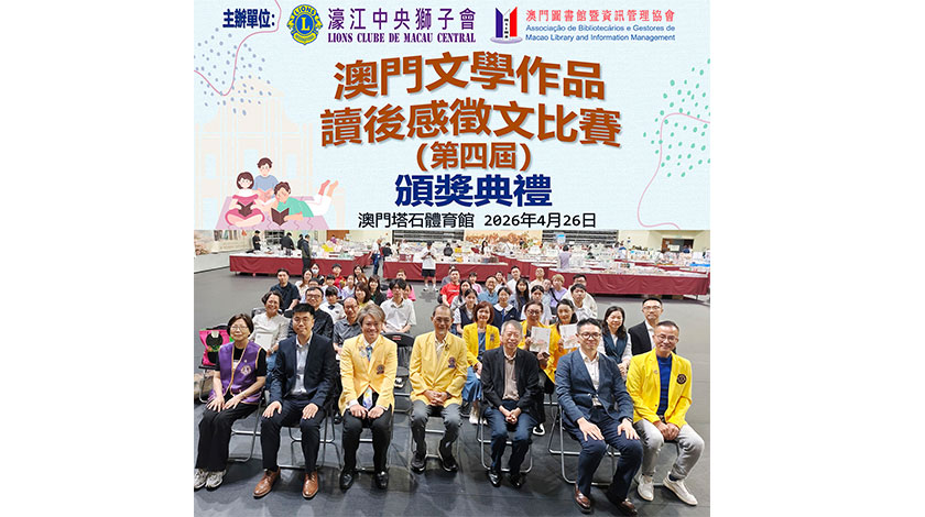 【特訊】為弘揚優良閱讀風氣,加強本澳青少年深入了解本地創作的文學及文化,提升校園書香氛圍,濠江中央獅子會及澳門圖書館暨資訊管理協會聯合主辦第四屆澳門文學作品讀後感徵文比賽,賽事自啟動以來,反響熱烈,收到全澳各區多所中小學大量優質參賽稿件,來稿題材多元、文筆真摯,既有品讀經典名著的深度感悟,亦有結合生活見聞、貼合澳門本土風土文學的真情隨筆,充分展現出本澳新一代青少年扎實的文字功底、良好的閱讀習慣以及積極正向的精神面貌。
