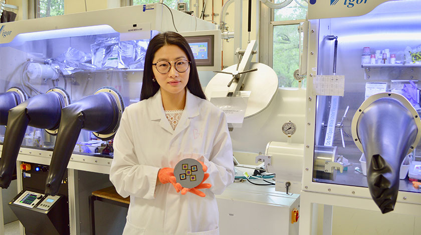 12月21日,在澳大利亞堪培拉,參與研究的澳大利亞國立大學申何萍博士在實驗室展示新型電池。澳大利亞國立大學和美國加州理工學院的研究人員合作,將硅太陽能電池和鈣鈦礦太陽能電池相結合,有望帶來更高效、更便宜的太陽能利用技術。(新華社發)