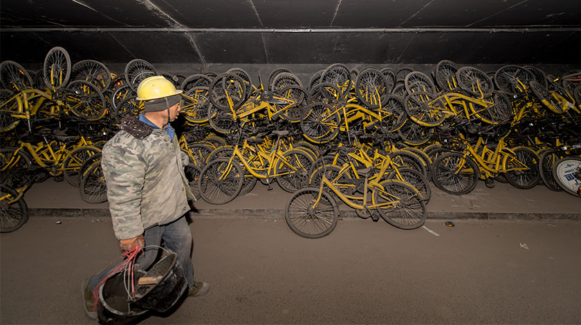 12月21日,中國交通運輸部新聞發言人吳春耕在北京表示,交通運輸部正督促ofo小黃車公司暢通退押金渠道、優化退押金流程,加快線上退押金進度,切實保障用戶合法權益。圖為山西省太原市,上千輛ofo小黃車被遺棄在一處待建工地。(中新社圖片/ 韋亮 攝)