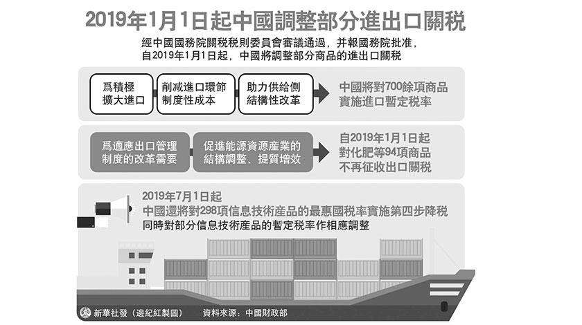 圖表:2019年1月1日起中國調整部分進出口關稅(新華社發 邊紀紅 製圖)