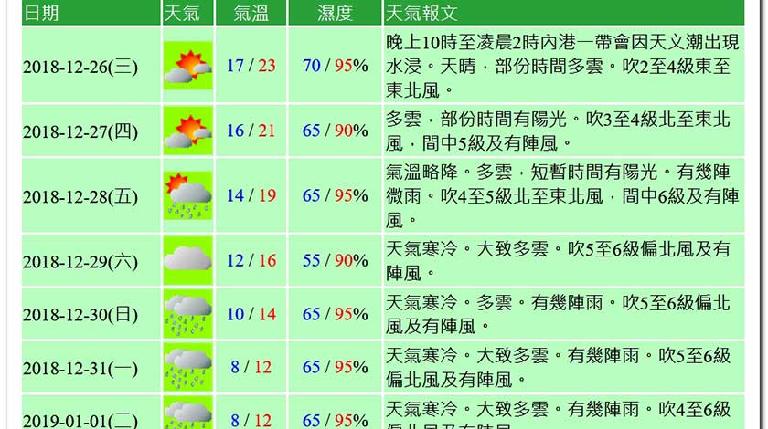 氣象局表示,一股強烈冬季季風將於本周後期抵達華南沿岸地區,屆時將為本澳帶來寒冷和有雨天氣,預料周五起氣溫顯著下降,至周日降至約10℃,除夕日氣溫將進一步下降至最低8℃。