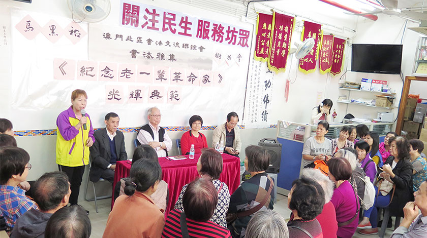 座談會於下午三時舉行,街坊總會榮譽會長吳仕明、馬黑祐坊會負責人周宜心、鄭麗霞、林水河、胡紅,李棣華,黃瑞英、北區書法聯誼會負責人蘇祥基、李國光、何廣彬、梁有蘇等出席。吳仕明回顧上世紀全心全意為人民謀幸福的毛澤東、劉少奇、周恩來、朱德、鄧小平等老一輩革命家對中國革命和建設事業作出偉大貢獻和無私奉獻的光輝一生致以親切懷念。希望藉此紀念活動,激勵我們特別是年青一代,在今天新的歷史時期進行偉大的鬥爭,偉大的工程,偉大的事業和偉大的夢想開創的實踐建設所取得輝煌成就。從而使中國人民更加努力,更有信心學習老一輩革命家幾十年如一日的堅持信念,不忘初心,為實現中國的解放事業,實現中華民族的偉大夢想而進行不懈奮鬥的光輝典範,對老一輩的革命精神,崇高品德和高尚的情操,不論過去、現在和將來,都是我們學習的光輝榜樣,中國人民一定永遠銘記於心中。