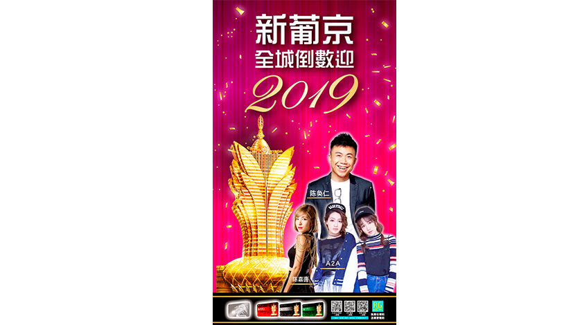 【特訊】「新葡京全城倒數迎2019」慶祝活動將於除夕夜在新葡京戶外廣場舉行,香港實力派歌星獲邀表演助慶,配合整座建築物的特別燈光效果,與觀眾一同喜迎新年的來臨。