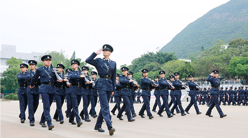 香港特區政府政務司司長張建宗1月6日發表網誌,他在網誌中指出,今年是警隊成立175周年,香港作為全球罪案率最低的城市之一,警隊在維持治安及社會秩序方面的優越表現有目共睹,2017年香港整體罪案不但較前一年下跌7.6%,更是1975年以來的新低;2018年本港首十一個月總體罪案50122宗,較2017年同期下跌2.9%。圖為警隊會操資料照片。(香港中通社)