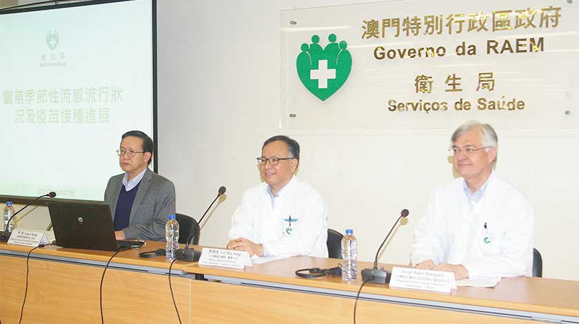 衛生局昨舉行季節性流感最新流行情況新聞發佈會,山頂醫院醫務主任李偉成、兒科及新生嬰兒科主任Jorge Sales Marques及疾病預防控制中心主任林松通報上述情況。