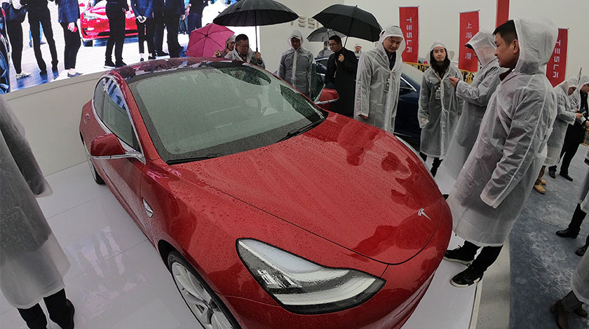 1月7日下午,上海有史以來最大的外資製造業項目特斯拉超級工廠在臨港產業區正式奠基開工建設。工廠一期年生產規模為25萬輛純電動整車,包括Model 3等系列車型。特斯拉超級工廠集研發、製造、銷售等功能於一體,全部建成運營後年產能將達50萬輛純電動整車。圖為特斯拉Model 3純電動汽車。(中新社圖片/ 張亨偉 攝)