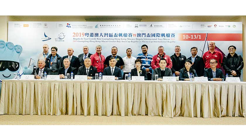 主辦單位昨(9)日舉行「2019粵港澳大灣區盃帆船賽暨澳門盃國際帆船賽」新聞發佈會介紹賽事詳情,體育局代局長林蓮嬌、副局長劉楚遠、縱橫四海航海賽事管理代表馬文偉和鍾勇、海事及水務局海事服務處處長劉詠宇、澳門風帆船總會理事長蘇光輝、賽事國際裁判謝爾蓋 (Sergey Kuzovov)、賽事競賽官羅斯 (Ross Chisholm) 以及一眾嘉賓、傳媒等出席。