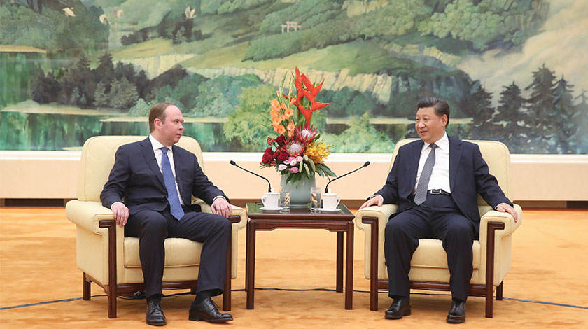 10月17日,中國國家主席習近平在北京人民大會堂會見俄羅斯總統辦公廳主任瓦伊諾。 (中新社圖片/ 盛佳鵬 攝)