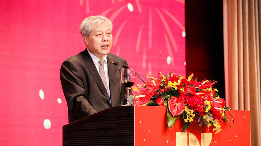 傅建國在致辭時感謝工商界新老朋友對南光事業的關心、支持和幫助。他指出,過去的2018年是充實的一年,港珠澳大橋順利通車、200億粵澳合作基金落地、CEPA升級。我們隆重慶祝改革開放40周年,特區政府與國家發改委簽署關於支持澳門全面參與和助力“一帶一路”建設的安排。在特區政府的帶領下,齊心協力抗擊超強臺風“山竹”。這些成就都彰顯了澳門工商界支持特區政府依法施政,發展經濟,保障民生,服務社會的擔當。
