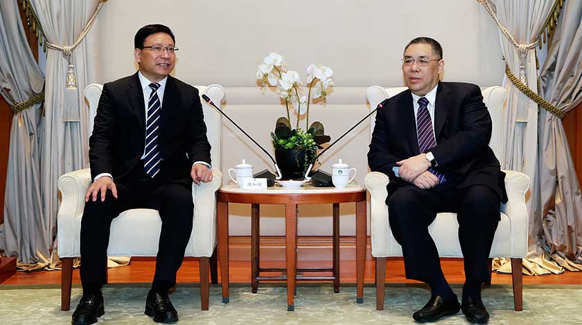【特訊】行政長官崔世安昨日上午在政府總部與深圳市市長陳如桂一行會面,雙方回顧了合作成果,展望未來的共同發展,並就投入粵港澳大灣區建設等議題交換意見。