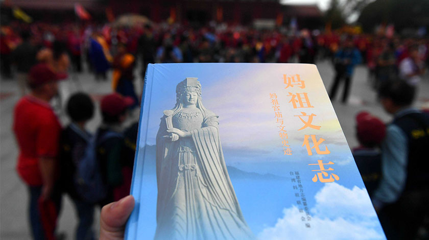 【中新社福建湄洲島10月17日電】(記者 林春茵)福建省地方志編纂委員會(下稱福建方志委)17日聯合湄洲媽祖祖廟董事會、台灣媽祖聯誼會在“媽祖故里”福建省莆田市湄洲島舉行《媽祖文化志》編纂工程告竣儀式,近千名台灣媽祖信眾及海外媽祖宮廟代表共襄盛況。