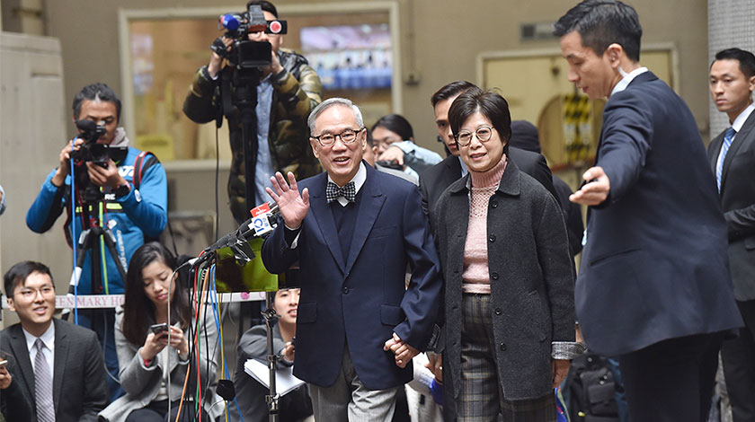 對於他就定罪尋求上訴,曾蔭權指,香港是法治社會,尋求公義和清白需要堅持,自己不會放棄。回應傳媒時,曾蔭權與曾鮑笑薇始終緊握著手。