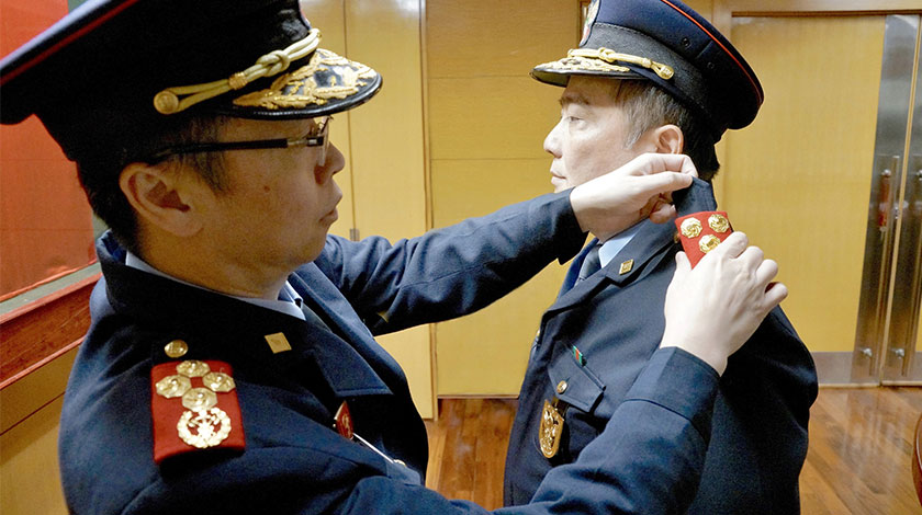 【特訊】消防局於昨日,在消防局總部舉行副局長就職儀式,儀式中向一名消防總長頒授副消防總監軍銜。