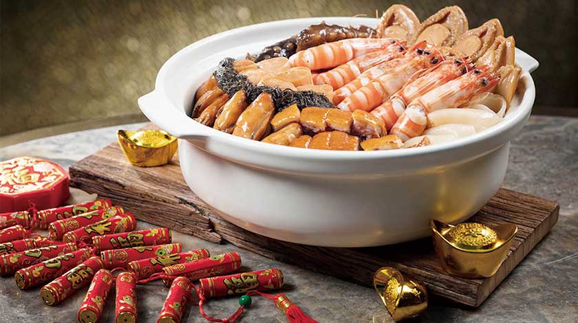 提起賀年美饌,不可不提廣東人逢年過節必備的「盆菜」,親朋好友齊齊圍桌舉筷,為新春聚會錦上添花。美獅美高梅的淳餐廳及澳門美高梅的金殿堂餐廳將推出「萬事如意盆菜」及「團圓百寶盆菜」兩款選擇,均包括鮑魚、花膠、日本元貝、海參等十多款高級食材,盆菜套餐於1月30日至2月17日期間供應。