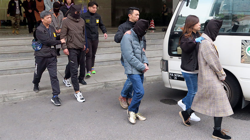 隨後,司警又根據調查資料,於賭場的酒店房間,再拘捕四男三女集團成員,撿得多部手提電話和三萬多元現金。司警調查相信,有內地詐騙集團,窺準高利貸人士不敢報案心態。向他們借貸詐騙,手法是由成員假扮賭客向高利貸人士借貸,每次借貸十萬元,在高利貸人士陪同賭博期間,侍機拿走籌碼交給現場掩護的成員帶走籌碼,兌回現金。司警相信該詐騙集團運作最少一年,最少涉及三宗詐騙,相信仍有多人被騙未有報案,最少涉及騙款五百萬元。