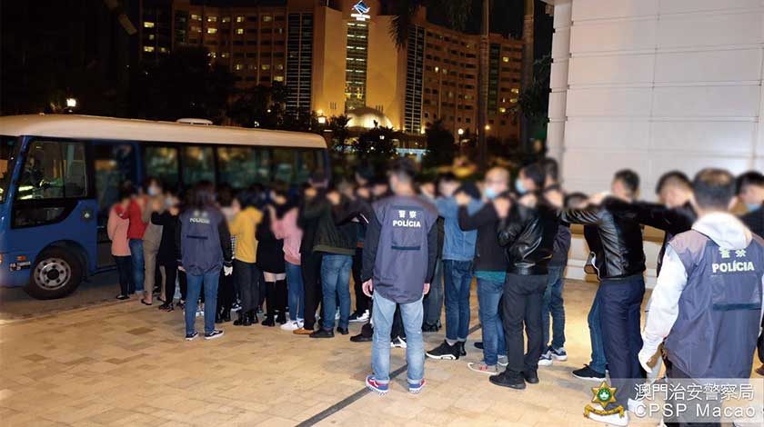 【特訊】在警察總局統籌下,治安警察局多個部門持續進行「冬防行動2019」。澳門警務廳、海島警務廳、情報廳及特警隊人員昨日分別於新馬路、高士德大馬路、司打口、黑沙環區及路氹金光大道一帶進行截查巴士及巡查行動,以及於路環巡查勞工宿舍,行動中共截查了920人(男 545 女375),其中發現40人(21男 19女)涉嫌向他人非法兌換金錢及從事不法借貸活動、一名內地男子未能出示證件,並將其帶返警局調查。