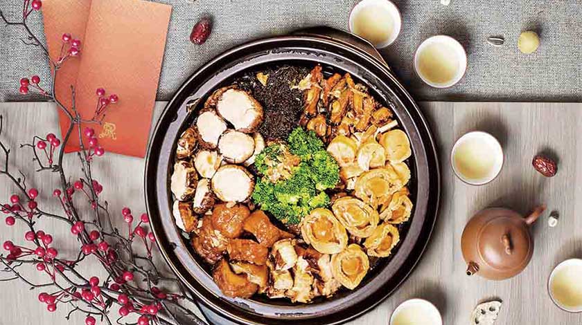 雅舍餐廳於整個二月推出優裕盆菜,讓賓客與親朋好友可安坐家中分享外帶佳節滋味。優裕盆菜用料豐富,當中包括原隻南非鮑魚、關東遼參、柱甫,以及新年傳統菜式如「發財就手」(髮菜花菇燜豬手及日本金蠔)和「橫財大利」(燜豬脷)等超過20種珍貴食材。需提前最少24小時於雅舍餐廳預訂。
