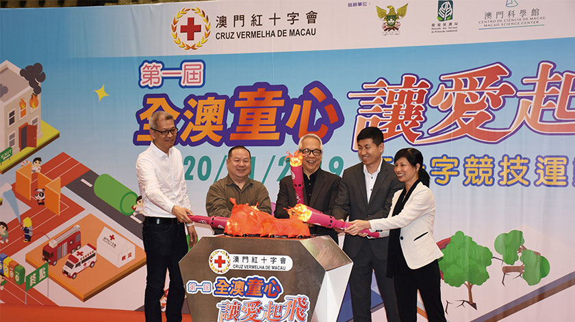 另外,紅會昨假綜藝館舉辦第一屆全澳童心讓愛起飛紅十字競技運動會,設分個人及親子組共五個組別,參賽者以闖關方式完成求生、救援、消防和環保等元素構成的模擬情景障礙賽,場外設有教育及遊戲攤位、救援器材展示及救援小英雄體驗區。有逾百名家長和子女出席參與。
