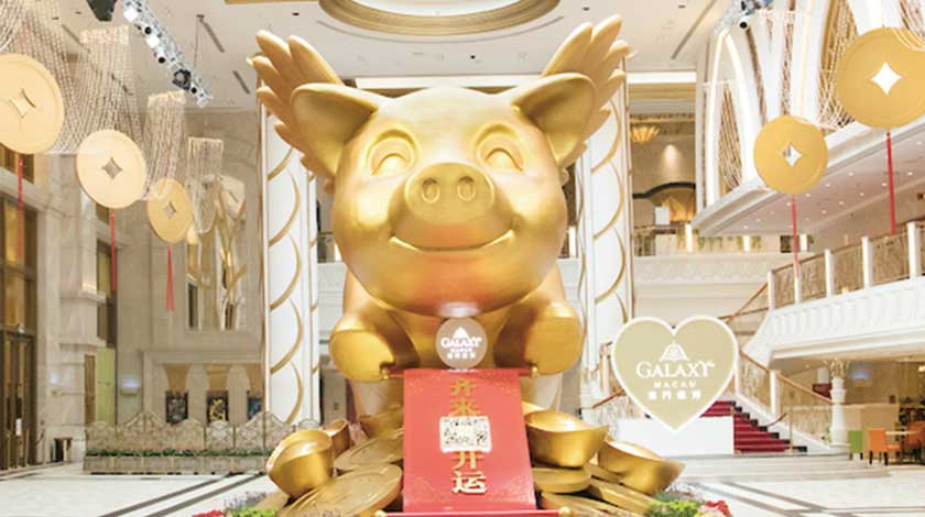 奪目璀璨的賀年裝飾佈滿「澳門銀河」每個角落,倍添節日氣氛。「澳門銀河」及「澳門百老匯」內金光璀璨、充滿賀年氣氛的佈置,映照出今個豬年的繁榮與興旺,賓客們定必感到驚嘆。