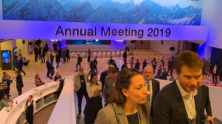 1月22日,世界經濟論壇2019年年會(冬季達沃斯)在瑞士達沃斯開幕。2019年世界經濟前景和5G、人工智能等面向未來的科技成為本屆年會首日討論的焦點。圖為冬季達沃斯主會場內景。(中新社圖片/ 彭大偉 攝)
