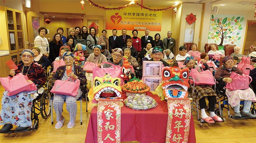 今年該堂探訪 16 間長者院舍( 包括:聖方濟各安老院、明輝護養院、母親會安老院、母親會護老院、濠江逸麗護老院、伯大尼安老院、清安醫所、聖瑪利亞安老院、仁慈堂老人院、頤安護老院(白鴿巢)、瑪大肋納安老院、盈康護老院、工聯九澳護養院、澳門護老院和仁愛安老院)及 16 間殘障人士服務機構(包括:啟能中心、澳門盲人重建中心、啟智學校、曉光中心、旭日中心、康樂綜合服務中心、啟康中心、主教山兒童中心、聾人服務中心、啟聰中心、澳門扶康會康盈中心、聖路濟亞中心、聖瑪嘉烈中心、聖類斯公撒格之家、中國澳門殘疾人奧委會暨傷殘人士文娛暨體育總會和曙光中心),探訪約三千一百多名長者及殘障人士,向他們致以慰問並送上祝福,向探訪之院舍長者送上暖意及派發禮品包和賀年利市,表達該堂對他們的關愛和重視,宣揚敬老愛老及為善最樂的傳統美德;同時亦向各機構的工作人員表示鼓勵以及感謝他們無私奉獻的精神。