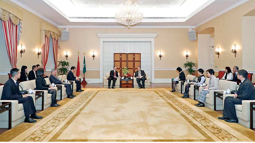 【特訊】行政長官崔世安昨日上午在政府總部會見澳門志願者總會會長白琪文一行,雙方就推廣本澳志願服務、弘揚無私互助精神交換意見。