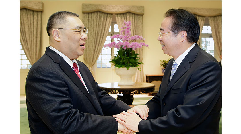 【特訊】行政長官崔世安昨日下午在政府總部與中央統戰部副部長、國務院僑務辦公室主任許又聲一行會面,雙方就發揮澳門僑界力量助力國家「一帶一路」建設等議題交換意見。