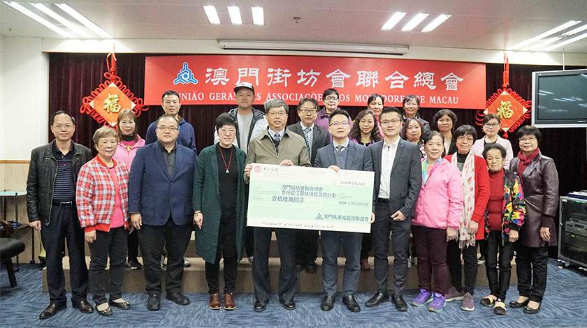 【特訊】馬黑祐坊會會長江超育和理事長周宜心日前率部分坊會理監事和熱心人士代表,向街坊總會送交16萬(澳門元,下同)籌款,以積極響應澳門街坊總會發起的募捐籌款行動,用作在貴州從江援建衛生站,支持內地打贏脫貧攻堅戰。街坊總會會長梁慶球及理事長吳小麗代表接收相關善款,並對馬黑祐坊會、所有愛心捐款者和熱心支持者表示萬分感謝。