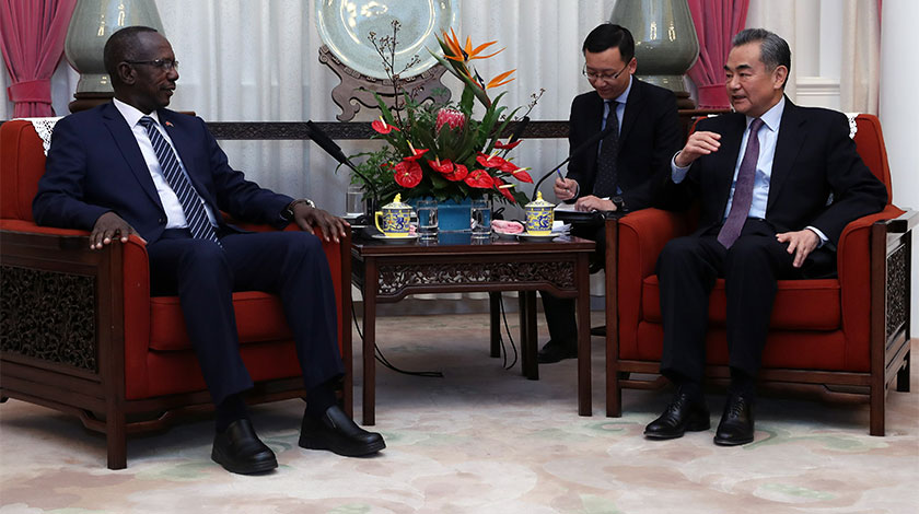 1月28日,中國國務委員兼外交部長王毅在北京會見蘇丹總統特使費薩爾。(中新社圖片/ 宋吉河 攝)