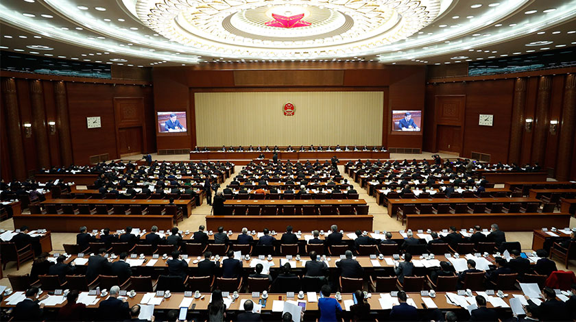 1月29日,十三屆全國人大常委會第八次會議在北京人民大會堂舉行第一次全體會議。會議聽取了全國人大憲法和法律委員會主任委員李飛作的關於外商投資法草案修改情況的匯報。在『投資促進』一章,草案二審稿作出多處修改和完善,以體現中共十九大報告提出的『凡是在我國境內註册的企業,都要一視同仁、平等對待』的精神。(中新社圖片/ 杜洋 攝)