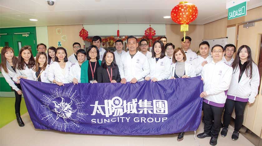 當日下午三時,一眾義工在太陽城集團行政總裁兼董事周焯華、公共及社會關係部高級副總裁李素茵帶領下抵達位於石排灣恩暉長者綜合服務中心,得到中心負責人、工作人員與一班老友記的歡迎。活動首先安排義工看望卧床的院友,向曾經為家庭、為社會作出貢獻大半輩子辛勞的長者表示敬意及送上新年祝福。同時,主辦單位更特意邀請澳門心悅軒文化藝術協會的陳建中及黃森娥到院舍為公公婆婆表演粵曲,表演歌曲包括「鳳閣恩仇未了情」、「胡不歸之慰妻」、「紫釵恨」、「打情駡悄」等,每首都是大家耳熟能詳的金曲,義工與長者歡聚一堂,一起唱歌互動,為現場添加歡樂氣氛。最後並向長者送上賀年水果及利是祝福他們,祝願他們身體健康,開心渡晚年。活動最後在一片歡樂聲中圓滿結束,場面溫馨歡樂。