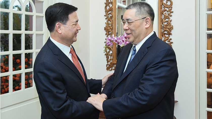 【特訊】行政長官崔世安日前在禮賓府與公安部常務副部長王小洪會面,就共同努力維護國家和澳門的安全、妥善部署今年雙慶工作交換意見。