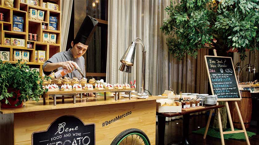 「班妮」週末意式市集靈感源自意大利熱鬧的傳統市集,誠邀賓客體驗意大利的飲食精髓和文化特色,品嚐搜羅自意大利不同地區的精選美酒、食材以及主題意式佳餚,體會如置身意大利的地道滋味。現場更設有多款意大利手工食品及商品可供選購,讓賓客將意式滋味帶回家中。