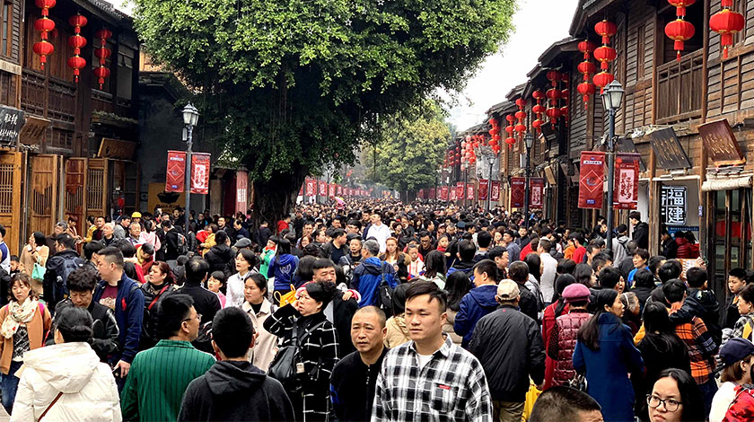 2月8日,農曆正月初四,福州著名的明清古街——南后街人潮湧動,來自全國各地的遊客紛紛前來尋古問今。(中新社圖片/ 王東明 攝)