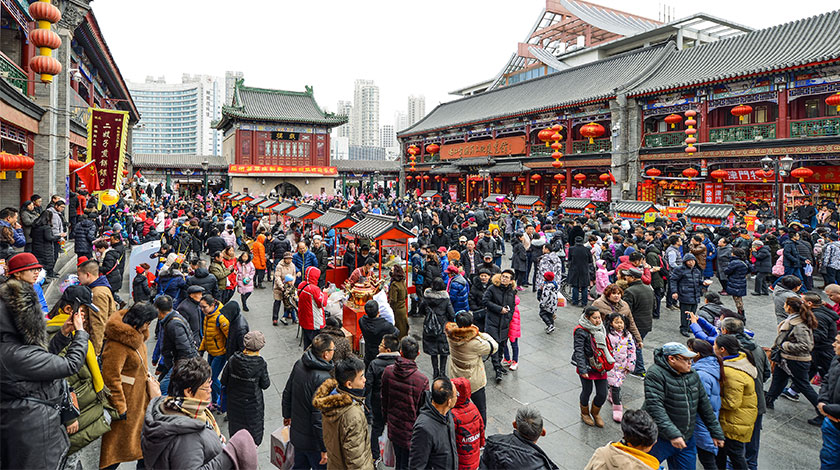 據天津市統計部門調查顯示,2019年春節黃金周期間,天津市共接待遊客518.89 萬人次。圖為春節期間,市民及遊客在天津古文化街遊玩。(資料圖)(中新社圖片/ 佟郁 攝)