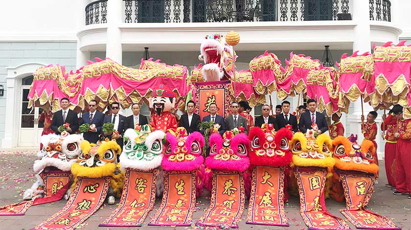 瑞獅起舞,祥龍翻騰,接著是採青、梅花樁精彩表演等,寓意為酒店所有賓客及員工帶來好運、財富、力量、智慧與吉祥。儀式最後在一片歡樂與掌聲中圓滿落幕。最後是舞龍醒獅隊伍繞行勵駿大道及酒店,祝願每位賓客豬年行大運,大吉大利,萬事漁意。