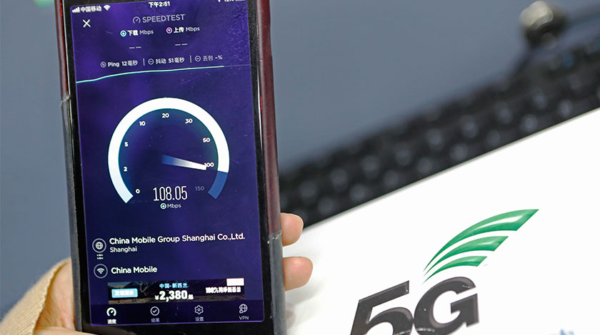 2月18日,中國首個5G火車站在上海虹橋火車站啟動建設,計劃於今年9月完成5G網絡深度覆蓋。圖為旅客在虹橋火車站5G體驗區內體驗。(中新社圖片/ 殷立勤 攝)