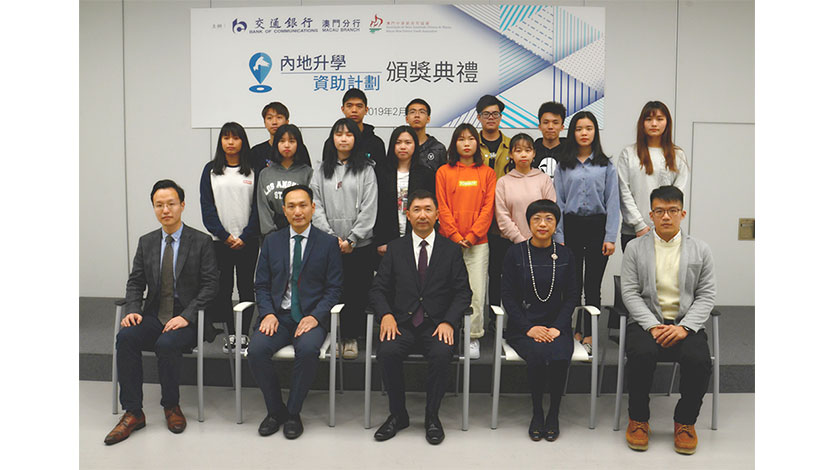 【特訊】交通銀行澳門分行及澳門中華新青年協會舉辦的「交通銀行─內地升學資助計劃」於本月12日在澳門青年創業孵化中心向受資助學生發放2019年度奬學金,並舉行了題為「粤港澳大灣區,歷史的進程」的講座。主辦方表示,希望透過奬學金、實習、參觀等計劃,支持澳門優秀青年前往內地高等學府升學,學習專業知識之餘,加深對祖國的了解,成為社會的棟樑之材。