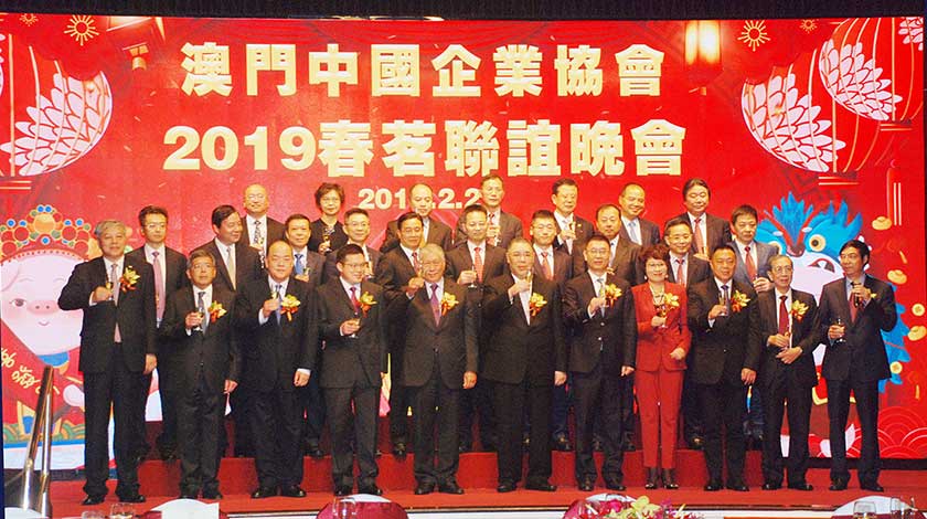 【特訊】 2月21日晚六時,澳門中國企業協會在萬豪軒舉辦春茗聯誼晚會。澳門特別行政區政府行政長官崔世安、全國政協副主席何厚鏵、中央人民政府駐澳聯絡辦公室副主任姚堅、駐澳部隊司令員徐良才、外交公署副特派員王冬、澳門特區立法會主席賀一誠、澳門特別行政區政府經濟財政司司長梁維特、澳門特區政府運輸工務司司長羅立文、澳門中華總商會會長馬有禮等社會各界人士,以及新聞媒體負責人、中企協會理監事會成員以及會員單位代表近1300人出席活動。中企協員工表演了精彩文藝節目,場面熱鬧、氣氛歡樂。