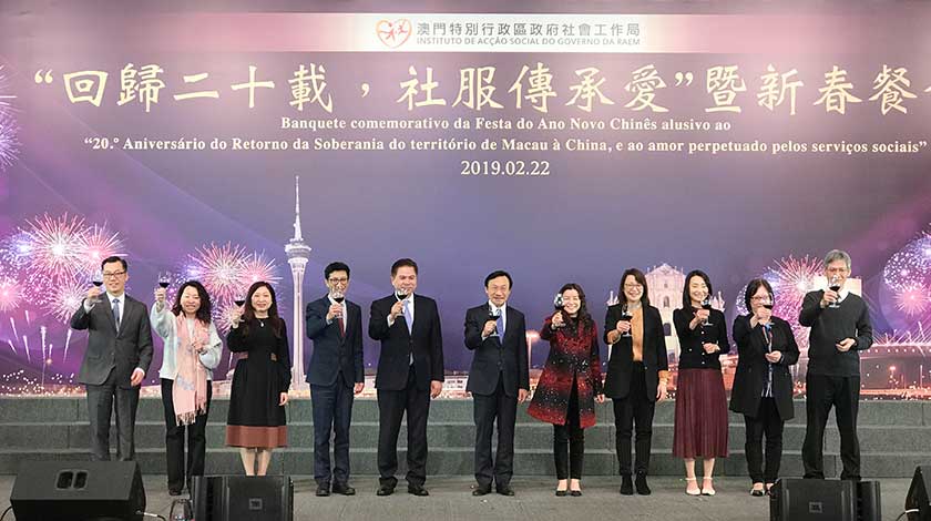 社工局昨午假旅遊塔會展娛樂中心舉行「回歸二十載,社服傳承愛」暨新春餐,與各社服團體代表聚首一堂。