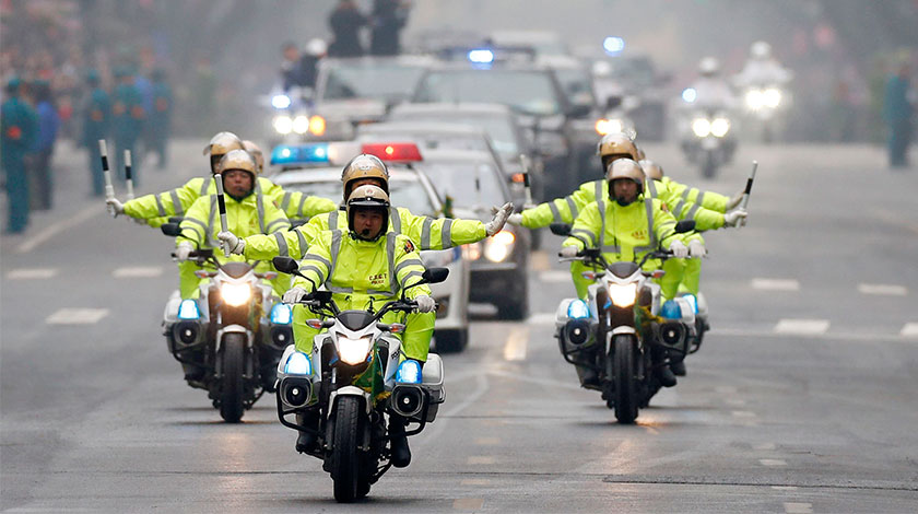 當地時間2月26日中午,朝鮮最高領導人金正恩乘車抵達越南河內下榻酒店。朝美領導人第二次會晤將於2月27日-28日在越南首都河內舉行。(中新社圖片/ 富田 攝)